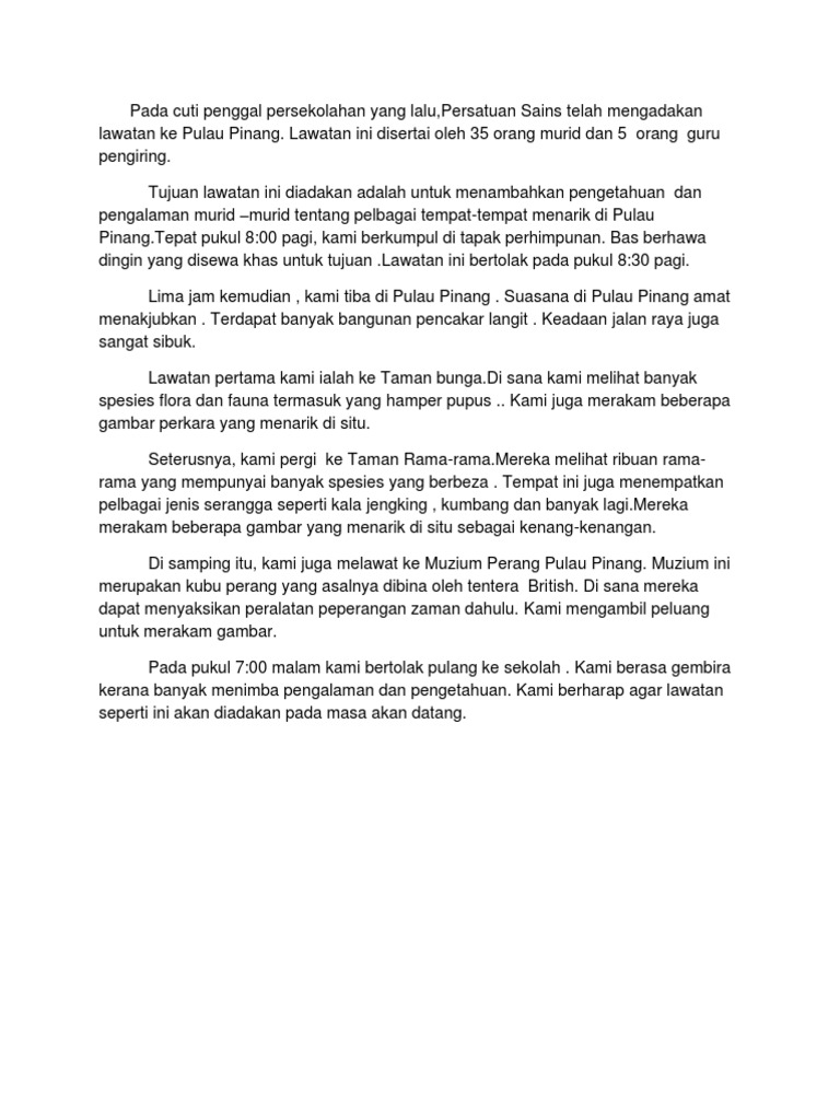 Karangan Pengalaman Percutian Ke Pulau Pinang Juec Tingkatan 1 Pdf